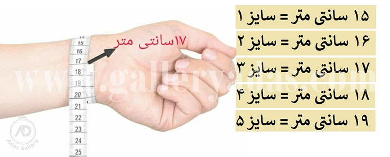 برای اینکار مچ دستتون را مطابق شکل با متر اندازه بگبرید. دقت کنید که حتما کیپ کیپ اندازه بگیرید و بهتر است پهنترین بخش مچ دست را برای این منظور انتخاب کنید که همان استخوان برآمدۀ مچ دست است.